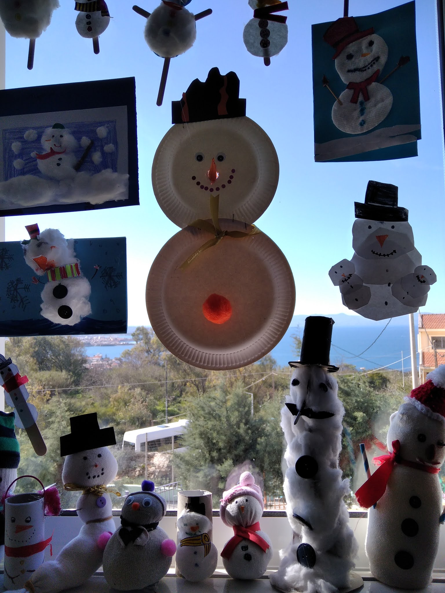 Ο Φλεβάρης πριν λίγες ημέρες μας έδειξε τα δόντια του και μας έκλεισε πάλι σε καραντίνα. Ξεκίνησε η εξ αποστάσεως διδασκαλία και βρήκε τρόπο ένα ελκυστικό τρόπο η κ. Κατερίνα Δημογεροντακη να κρατήσει σε εγρήγορση τους μαθητές της. Έφτιαξαν υπέροχες δημιουργίες- κατασκευές με θέμα τον χιονάνθρωπο, τις παρουσίασαν στην τάξη ,διακόσμησαν την τζαμαρία και τους κρατούν συντροφιά στην απαιτητική